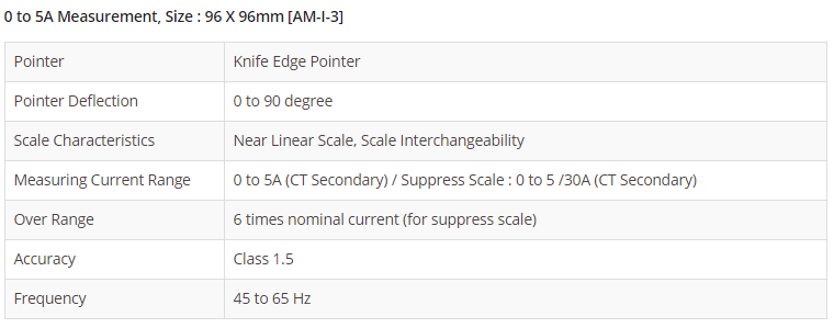 0 to 5A Measurement, Size : 96 X 96mm [AM-I-3]