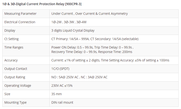1Ø & 3Ø-Digital Current Protection Relay 900CPR-3