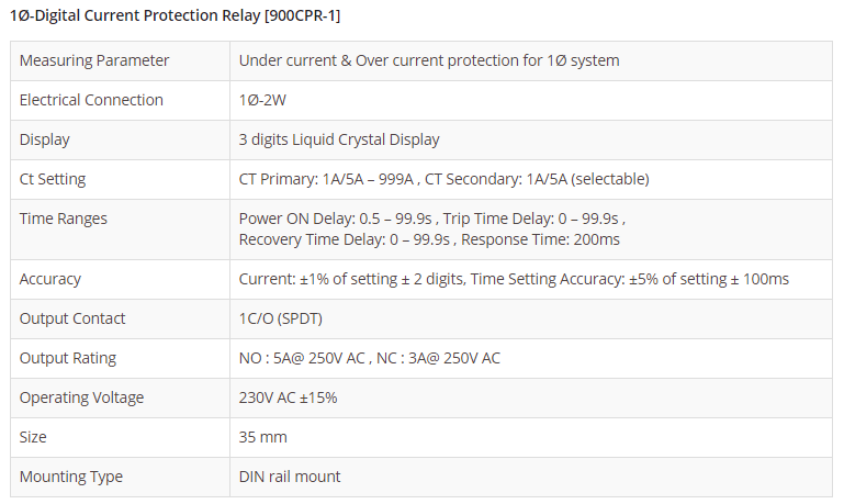 1Ø-Digital Current Protection Relay 900CPR-1