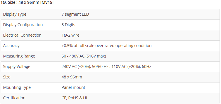 1Ø, Size : 48 x 96mm [MV15]