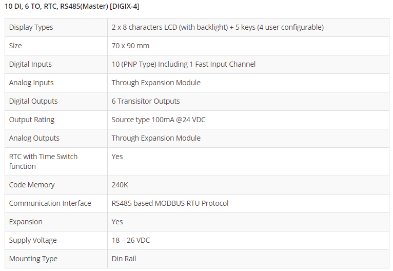 10 DI, 6 TO, RTC, RS485(Master) [DIGIX-4]