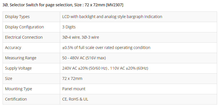 3Ø, Selector Switch for page selection, Size : 72 x 72mm [MV2307]