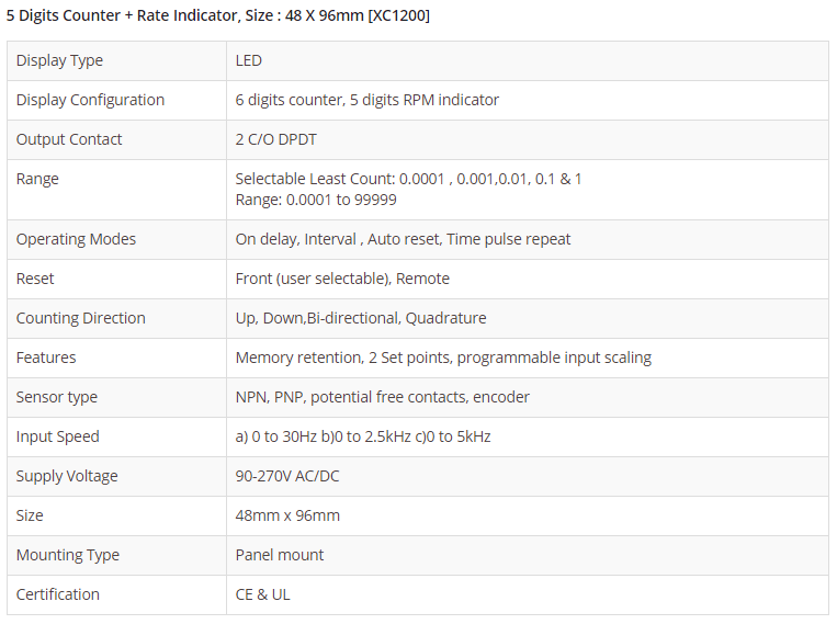 5 Digits Counter + Rate Indicator, Size : 48 X 96mm [XC1200]