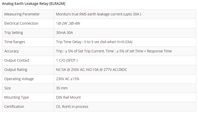Analog Earth Leakage Relay ELRA2M