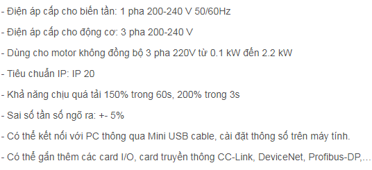 Biến tần Mitsubishi dòng FR-E720S với nguồn cấp cho biến tần là 1 pha 220V