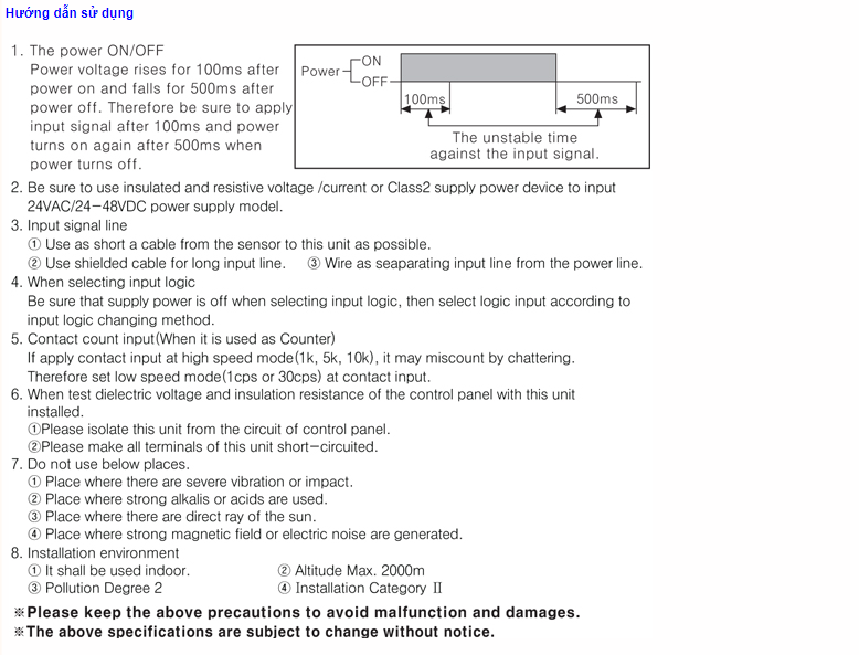 * Cài đặt thời gian ngõ ra one-shot từ 0.01 đến 99.99 giây mỗi 10ms