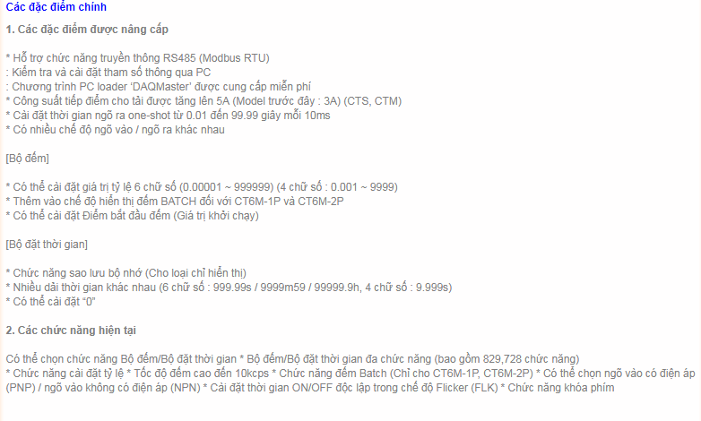 * Cài đặt thời gian ngõ ra one-shot từ 0.01 đến 99.99 giây mỗi 10ms