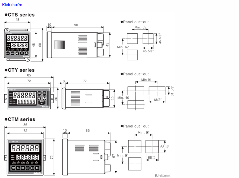* Công suất tiếp điểm cho tải được tăng lên 5A (Model trước đây : 3A) (CTS, CTM)
