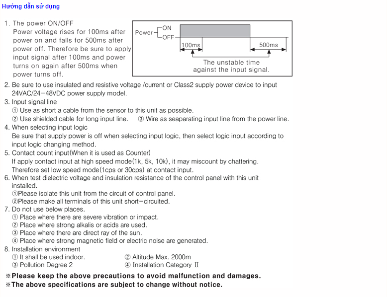 * Cài đặt thời gian ngõ ra one-shot từ 0.01 đến 99.99 giây mỗi 10ms