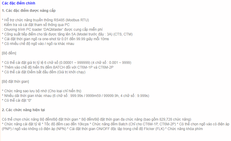 * Cài đặt thời gian ngõ ra one-shot từ 0.01 đến 99.99 giây mỗi 10ms