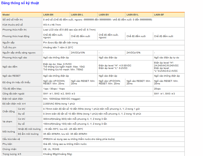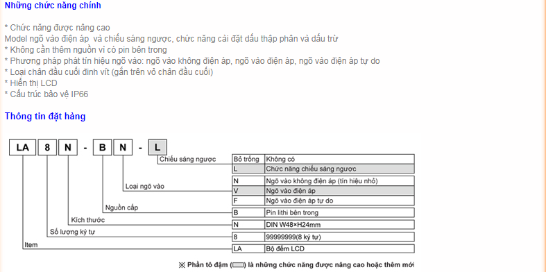 Model ngõ vào điện áp và chiếu sáng ngược, chức năng cài đặt dấu thập phân và dấu trừ