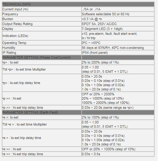 - ANSI Code: 50P, 50G, 51P, 51G |