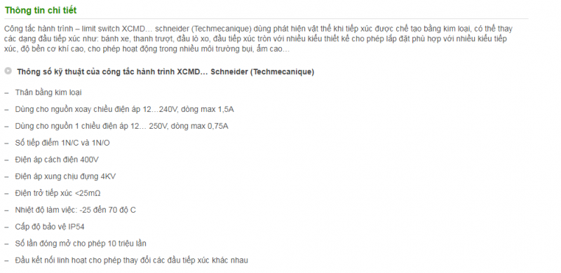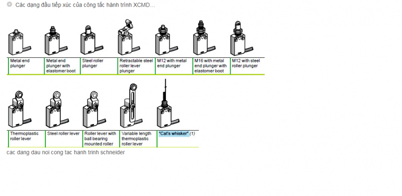 Công tắc hành trình XCMD Dùng phát hiện vật thể khi tiếp xúc được chế tạo bằng kim loại, có thế thay các dạng đầu tiếp xúc