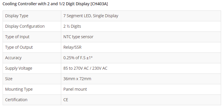 Cooling Controller with 2 and 1/2 Digit Display [CH403A]