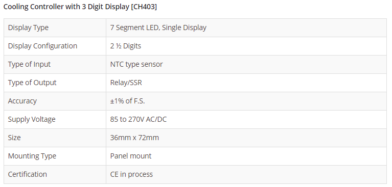 Cooling Controller with 3 Digit Display [CH403]