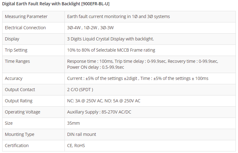 Digital Earth Fault Relay with Backlight 900EFR-BL-U