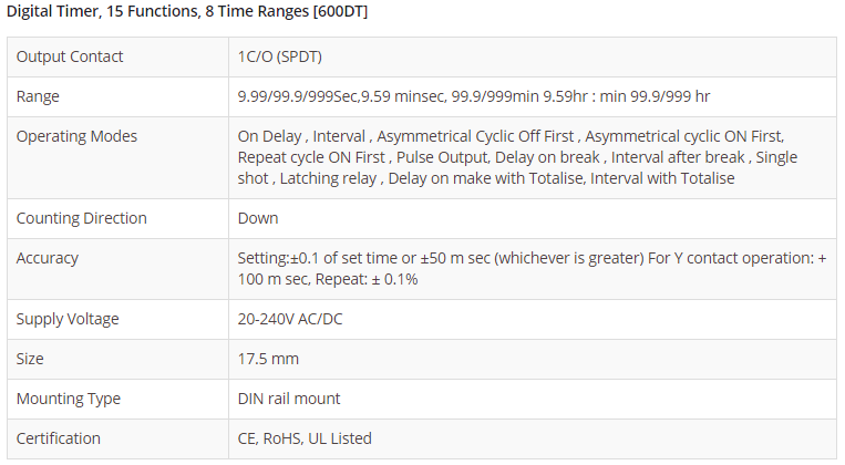 Digital Timer, 15 Functions, 8 Time Ranges [600DT]