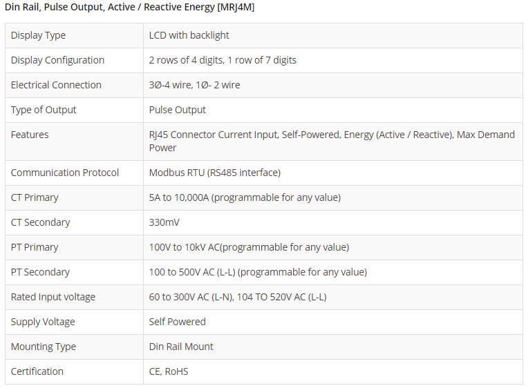 Din Rail, Pulse Output, Active / Reactive Energy [MRJ4M]
