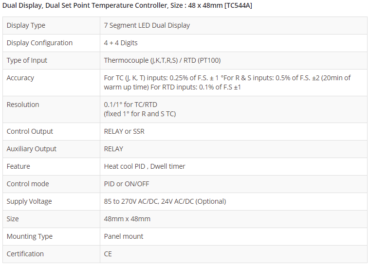 Dual Display, Dual Set Point Temperature Controller, Size : 48 x 48mm [TC544A]