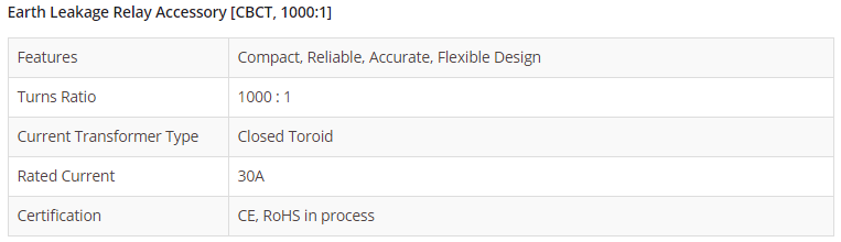 Earth Leakage Relay Accessory CBCT, 1000:1