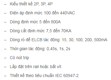 ELCB C series Mitsubishi chống dòng rò được thiết kế kiều 2P, 3P, 4P dùng bảo vệ quá tải, bảo vệ ngắn mạc, bảo vệ an toàn cho người với dòng rò (15, 30 mA) thiết bị và bảo vệ cháy nổ (100, 200, 500mA)