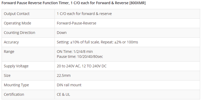 Forward Pause Reverse Function Timer, 1 C/O each for Forward & Reverse [800XMR]