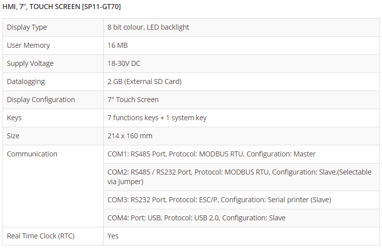 HMI, 7”, TOUCH SCREEN [SP11-GT70]