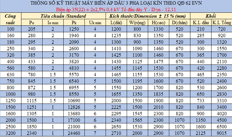 Máy Biến Áp Dầu 3 Pha Theo Qđ/62 Evn Kiểu Kín