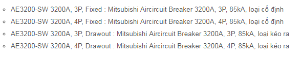 CÁC SẢN PHẨM MITSUBISHI ACB trong dãy :