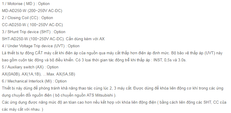 Các phụ kiện lắp thêm cho ACB Mitsubishi :