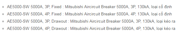 CÁC SẢN PHẨM MITSUBISHI ACB trong dãy :