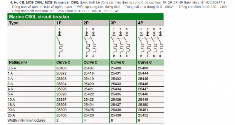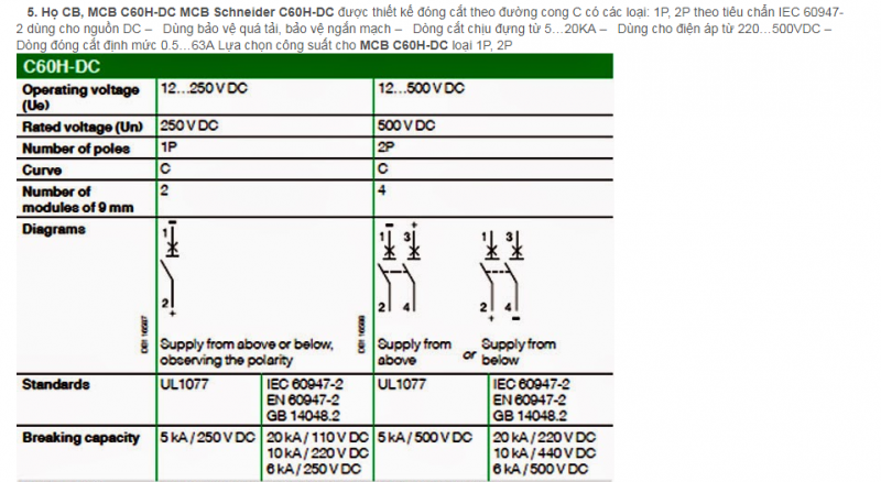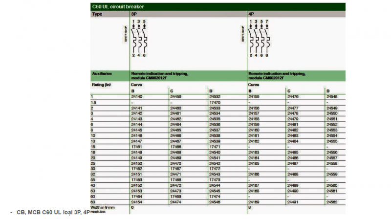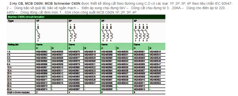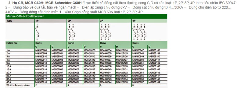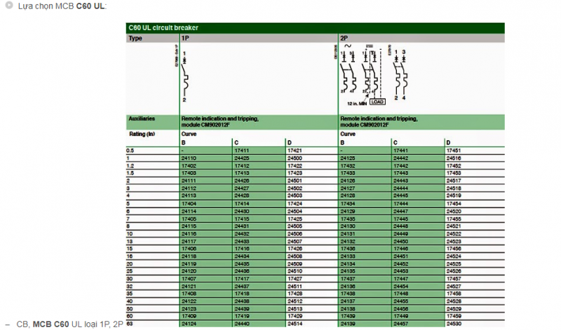 MCB: Minature circuit breaker: CB dùng với dòng định mức nhỏ hơn 100A, khả năng cắt ngắn mạch cũng nhỏ hơn 100KA