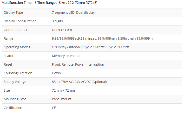 Multifunction Timer, 6 Time Ranges, Size : 72 X 72mm [XT246]