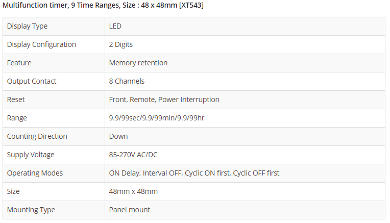 Multifunction timer, 9 Time Ranges, Size : 48 x 48mm [XT543]