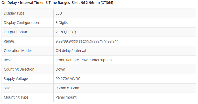 On Delay / Interval Timer, 6 Time Ranges, Size : 96 X 96mm [XT364]