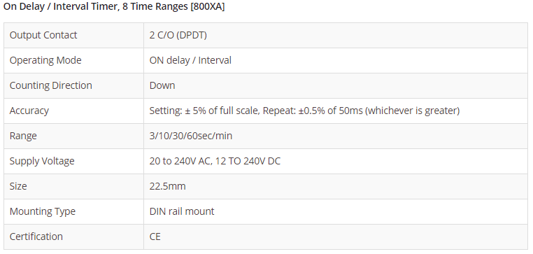On Delay / Interval Timer, 8 Time Ranges [800XA]