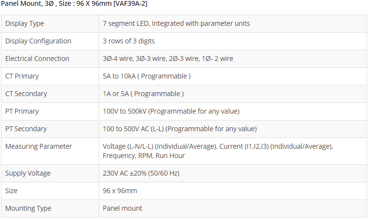 Panel Mount, 3Ø , Size : 96 X 96mm [VAF39A-2]