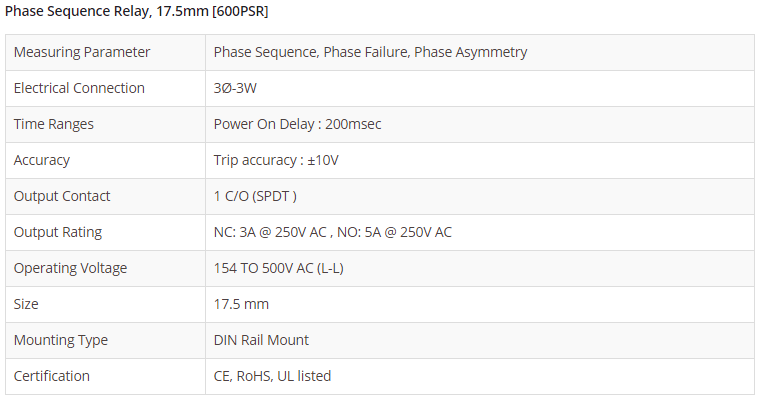 Phase Sequence Relay, 17.5mm [600PSR]