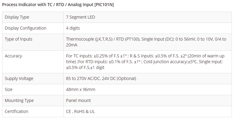 Process Indicator with TC / RTD / Analog Input [PIC101N]