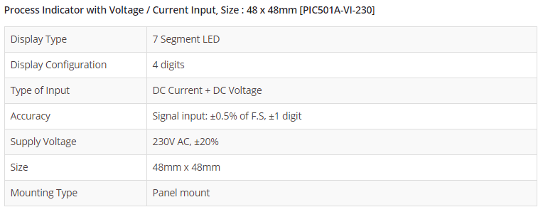 Process Indicator with Voltage / Current Input, Size : 48 x 48mm [PIC501A-VI-230]