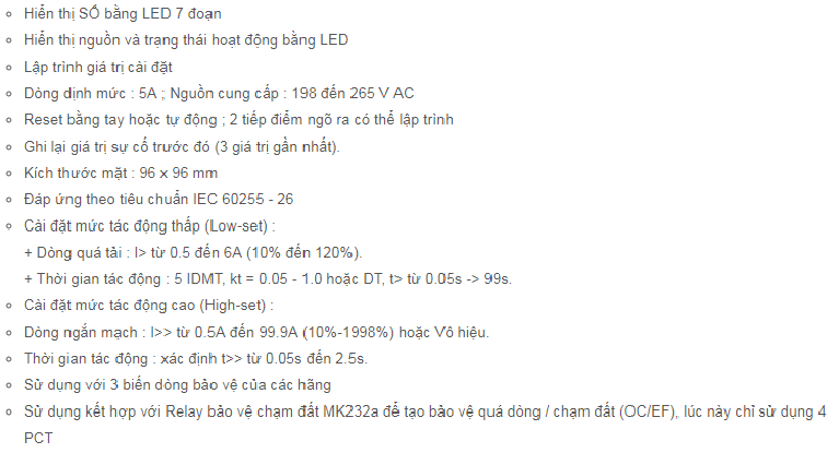 Relay bảo vệ quá dòng của Mikro, được sử dụng rộng rãi trong hệ thống điện công nghiệp. Sử dụng kết hợp với PCT của các hãng.