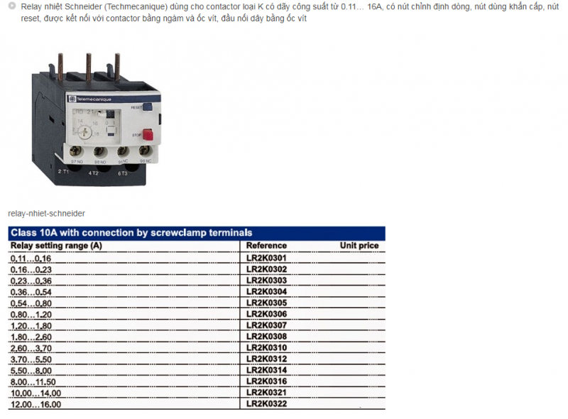 Relay nhiệt là thiết bị đóng cắt dựa trên nguyên lý co dãn của các thanh lưỡng kim khi chịu tác dụng của nhiệt độ, dung để bảo vệ động cơ và các thiết bị ở trạng thái quá tải, relay nhiệt thường kết hợp với khởi động từ (contactor).