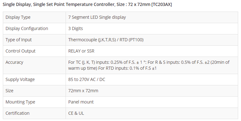 Single Display, Single Set Point Temperature Controller, Size : 72 x 72mm [TC203AX]