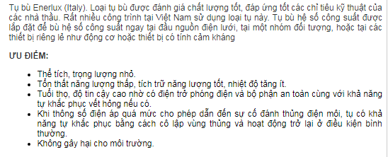 Tụ bù Enerlux xuất xứ: Italy . Là loại tụ bù với ưu thế về chất lượng ổn định, giá cả cạnh tranh, được các nhà thầu tin dùng.