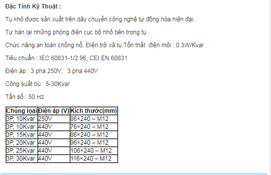 Tụ bù Sino xuất xứ: Trung quốc . Là loại tụ bù với ưu thế về chất lượng ổn định, giá cả cạnh tranh, được các nhà thầu tin dùng.