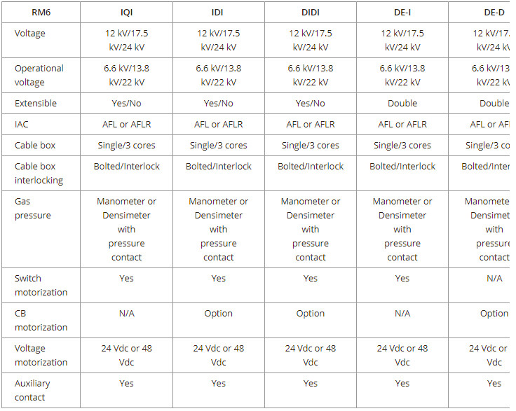 - RM6-Ne-IQIBI Tủ 4 ngăn 24kV 3 ngăn dao và 1 ngăn phụ tải 1 ngăn máy cắt bảo vệ đường dây